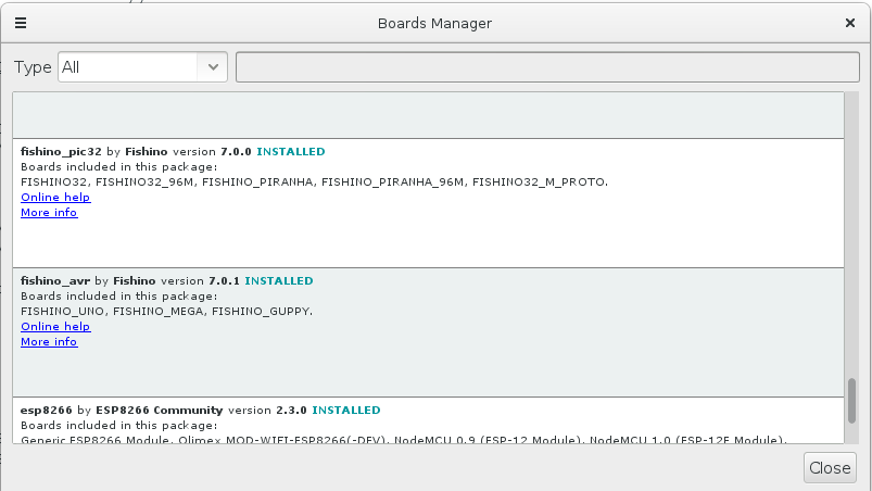 In time more and more packages were created, supporting also non-arduino items like, for example, the ESP8266 boards.