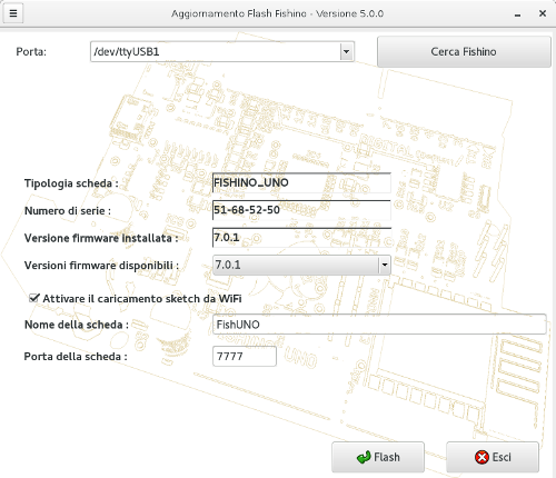 - Se avete l'applicazione FishinoFlasher datata scaricate l'ultima versione. È comunque buona norma farlo spesso.