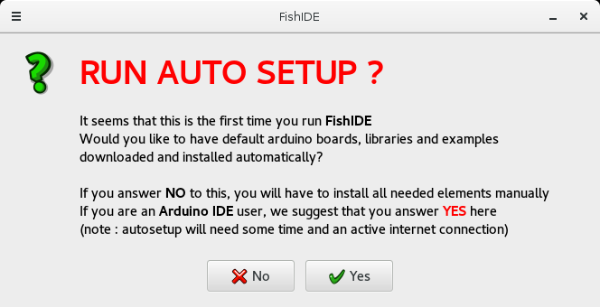 Then, double click it; it that's the first time you run FishIDE the following dialog will show up :